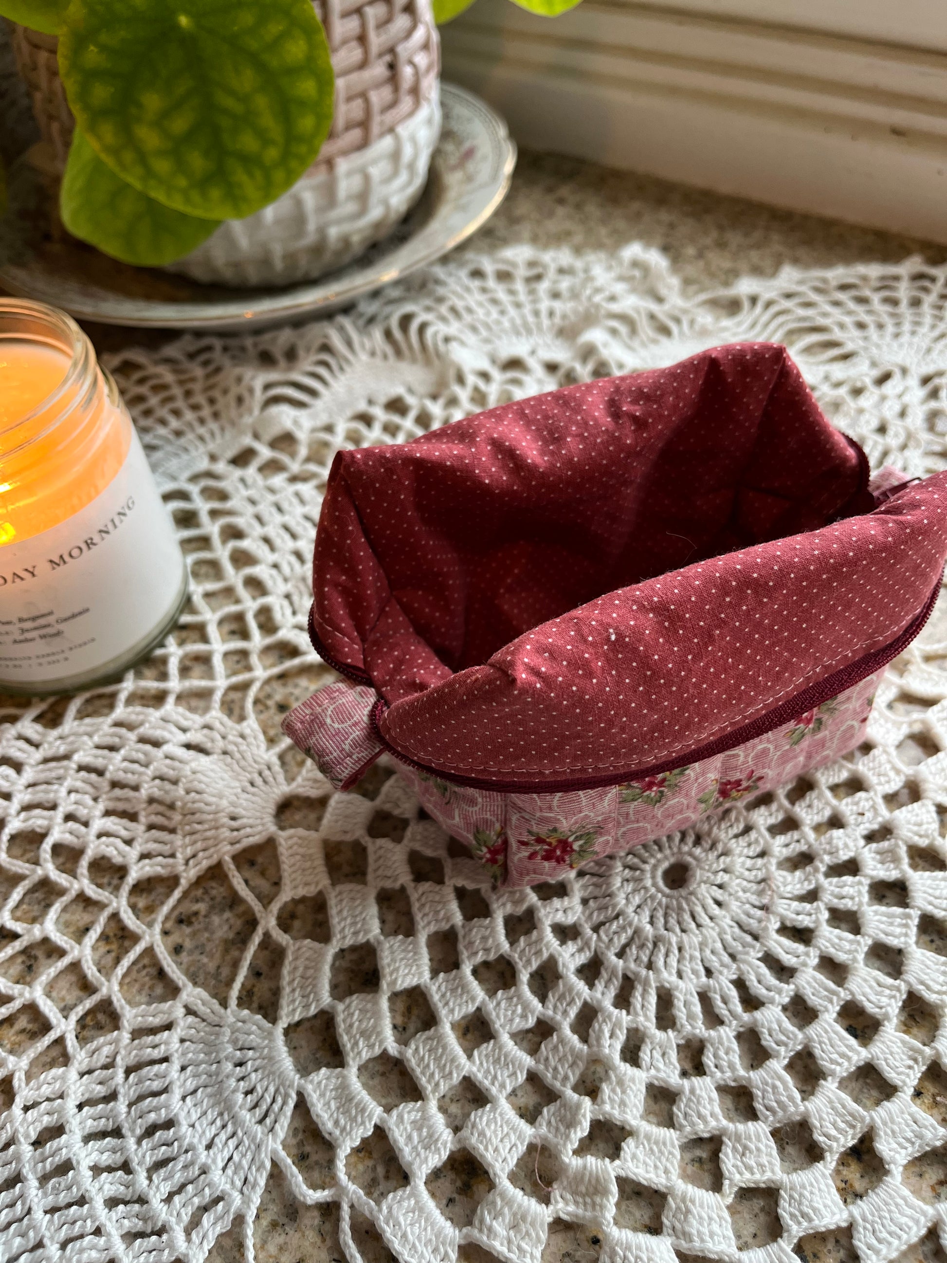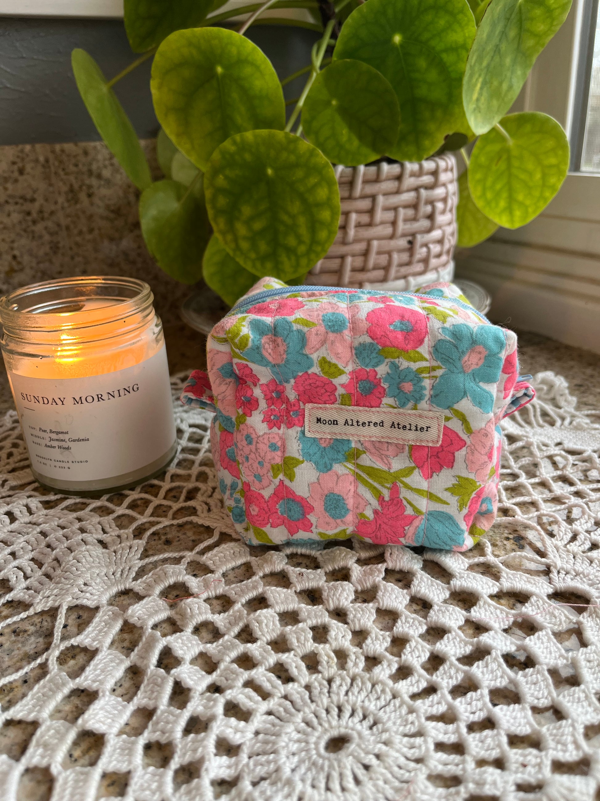 Mini Cosmetic/ Travel/ Makeup Pouches. These little Boxy bags are perfect to throw your most used products in your purse or travel bag. They feature a zipper closure with easy-to-pull tabs on each side. They are fully lined, soft, and durable. Once unzipped, they fold open to allow easy access to your items while they sit on the counter.